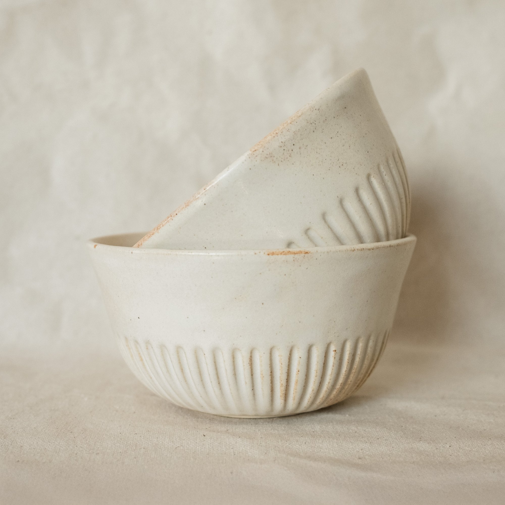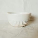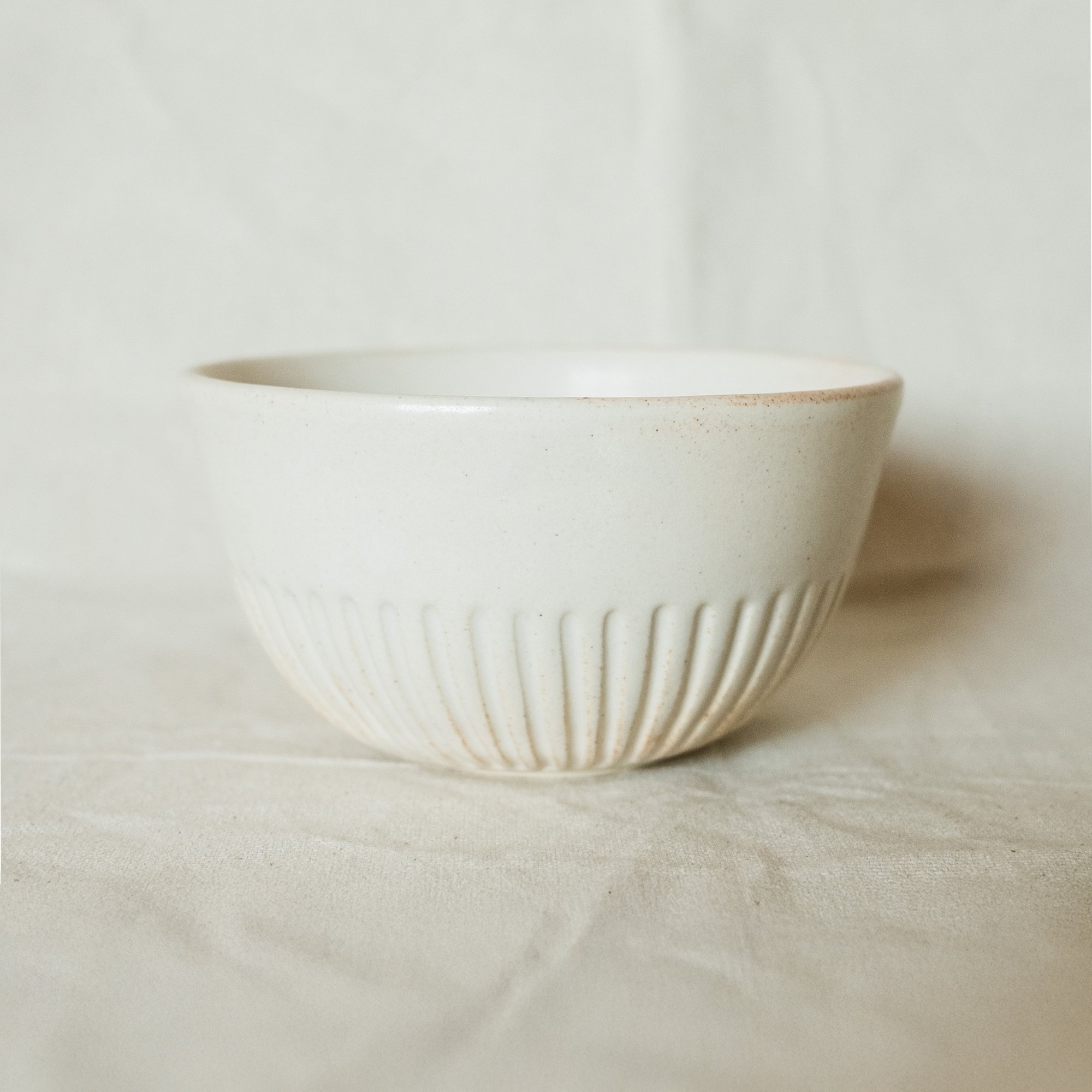 A small hand-carved bowl perfect for cereal made from white stoneware in a pebble white glaze.